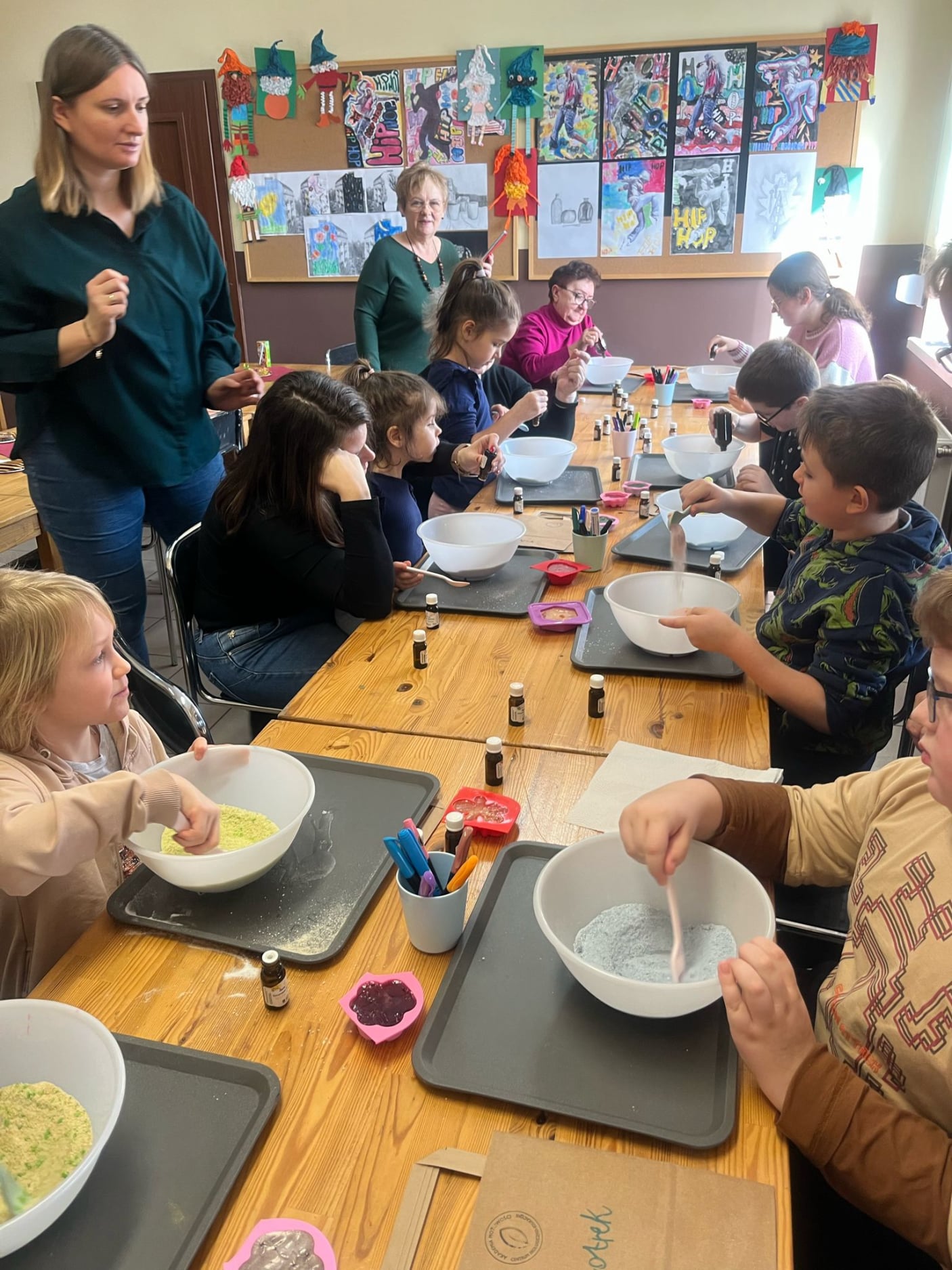 30-osobowa międzypokoleniowa grupa aktywnie uczestniczyła w kreatywnych warsztatach, które poprowadziła w sposób bardzo atrakcyjny pani Karina. Spotkanie to było nie tylko znakomitą zabawą, ale również doskonałą okazją do wspólnego spędzenia czasu, kreatywności i nauki poprzez doświadczenie.
