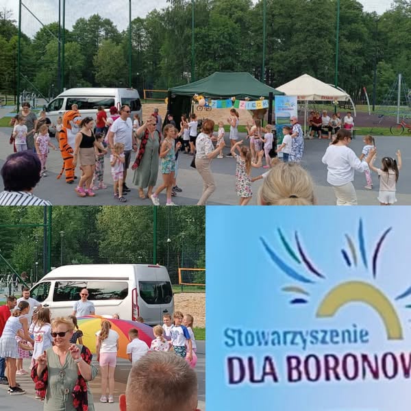 Ale największą atrakcją tego niedzielnego popołudnia były animacje poprowadzone przez Bernadetę Kowalską - Honorowego Członka Stowarzyszenia dla Boronowa.Były śpiewy,tańce,zabawy, wspólne muzykowanie,konkursy z nagrodami, malowanie kredą na chodniku, animacje z chustą,piana party-bańki mydlane,dzieci otrzymały też gratis balony, słodycze, lemoniadę. Dużym zainteresowaniem cieszyła się postać Tygryska ,z którym można było sobie zrobić pamiątkowe zdjęcie.Wszystkie atrakcje były bezpłatne - sfinansowane w całości ze środków własnych Stowarzyszenia dla Boronowa.Organizator wydarzenia Stowarzyszenie dla Boronowa bardzo serdecznie dziękuję Pani Bernadecie za nieodpłatnie przeprowadzenie imprezy dla dzieci ,zaś Pani Monice za zapewnienie sprzętu nagłaśniającego i nagłośnienie imprezy. Dziękujemy również wszystkim życzliwym Osobom - za okazane - nam Seniorkom- wsparcie i pomoc w zorganizowaniu tego wspaniałego , niezwykle barwnego wydarzenia dla dzieci.Wspaniałą atmosferę zapewniła nie tylko słoneczna, bardzo przyjemna pogoda , ale wiele nieodpłatnych atrakcji dla dzieci w dniu Ich święta.Bardzo serdecznie dziękujemy!!!
