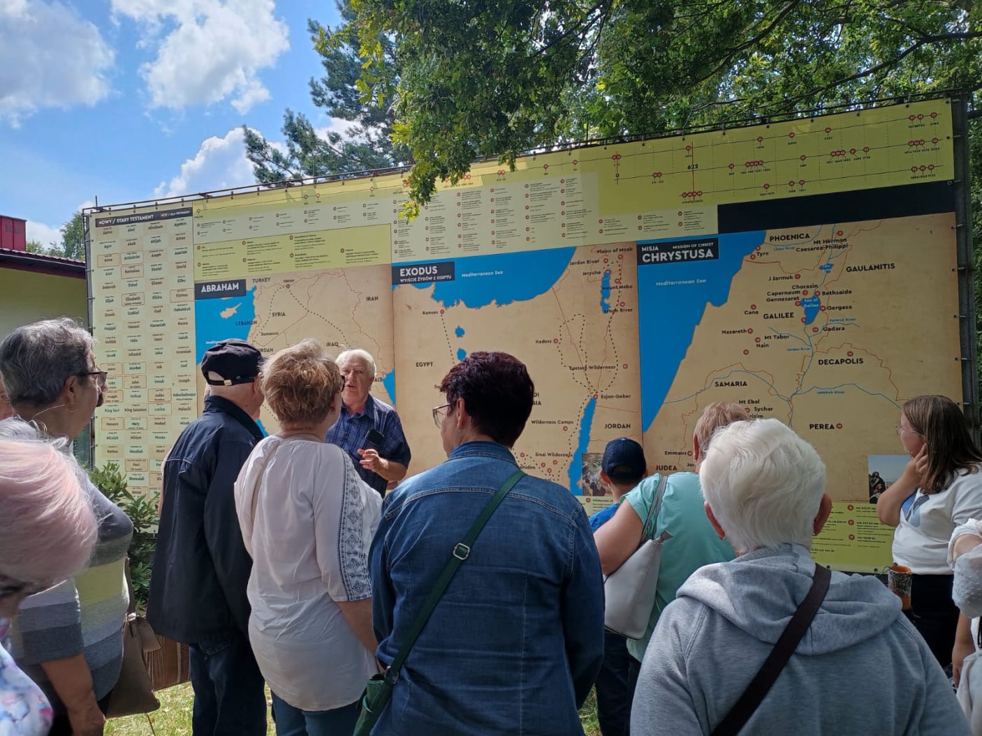 Odwiedziliśmy też ogrody biblijne _ Biblical Gadens - niezwykłe miejsce,które przeniosło nas w czasie oferując jednocześnie spokój i relaks w otoczeniu przyrody.Poprzez rośliny biblijne , tablice informacyjne , liczne rekwizyty zgłębiliśmy historie biblijne. Byliśmy pełni podziwu dla wiedzy i pasji gospodarza,a zarazem znakomitego przewodnika po ogrodach biblijnych W tych ogrodach duchowość łączy się z pięknem przyrody.Na pamiątkę pobytu naszej stowarzyszeniowej grupy od właścicieli Biblical Gardens otrzymaliśmy książkę pn." Polska - 50 urokliwych miejsc" z dedykacją dla Klubu Seniora - Kwitnące maki.
