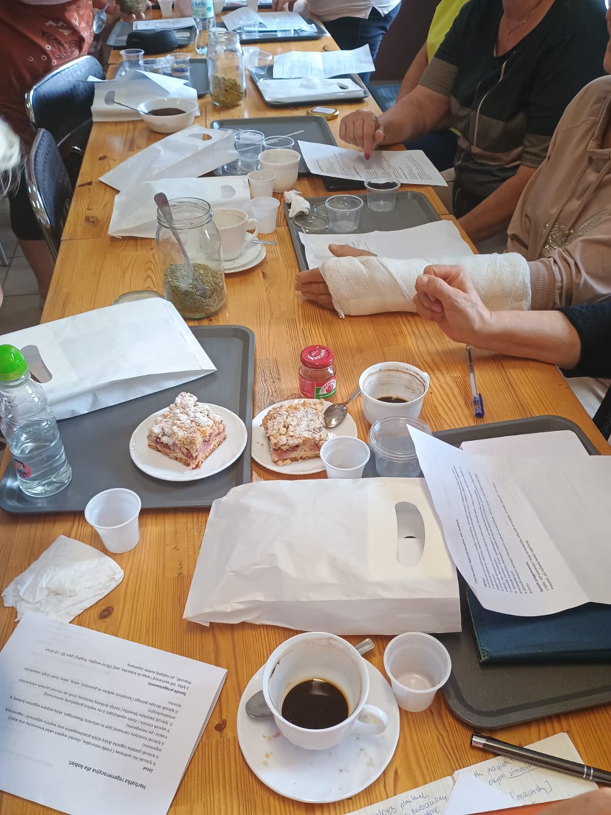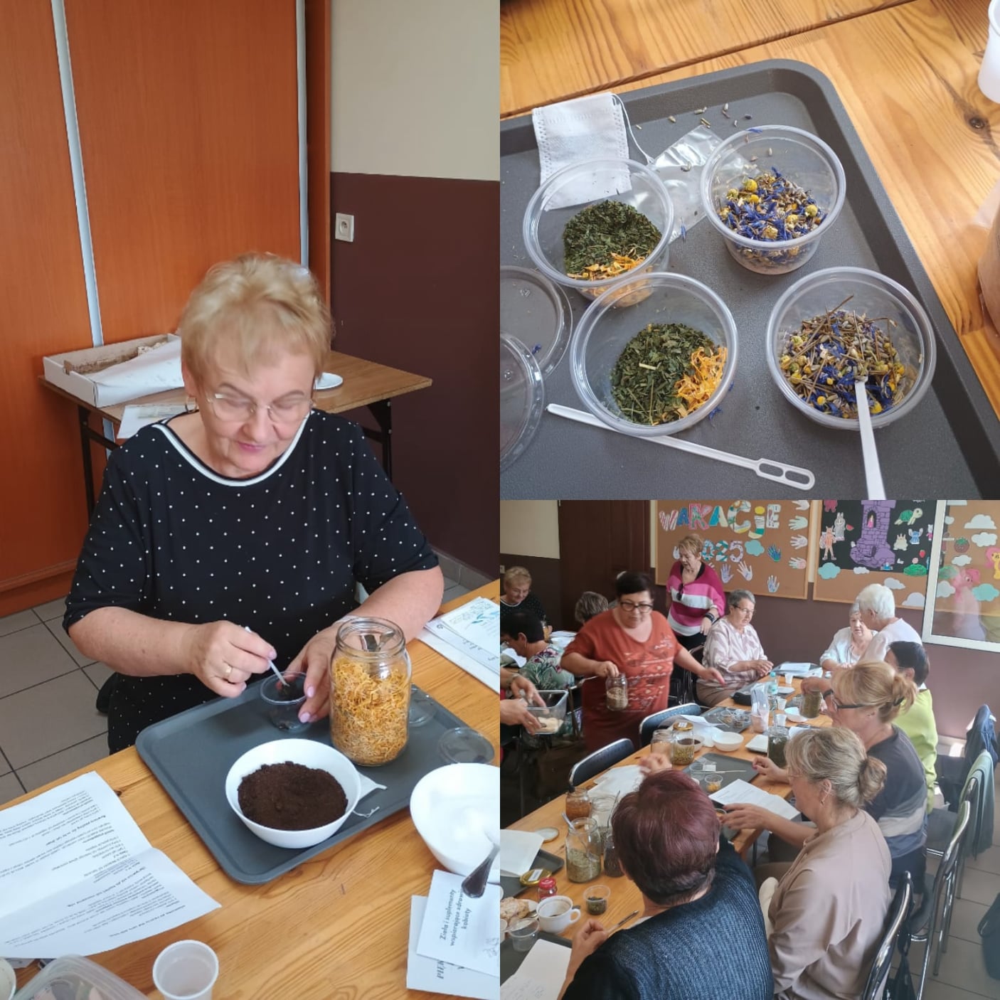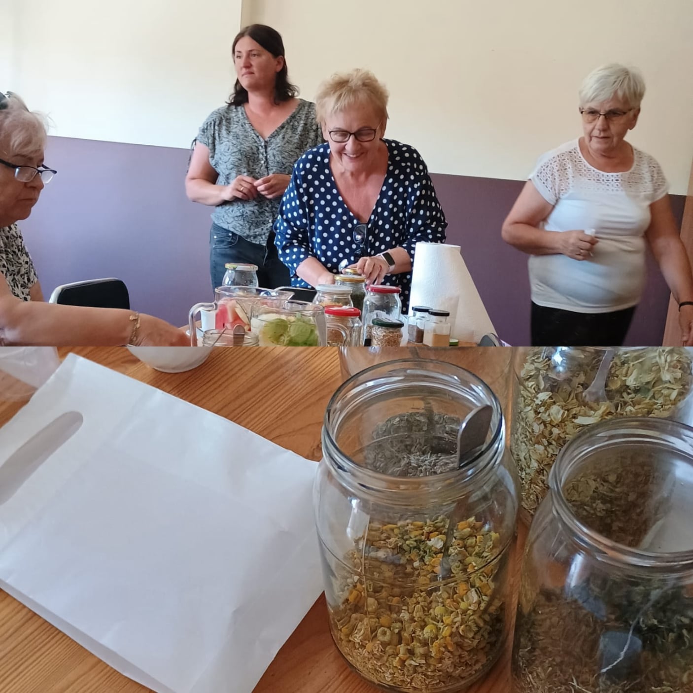 Uczestnicy szkolenia poszerzyli swoją wiedzę dotyczącą diety wzmacniającej odporność - co jeść ,aby uniknąć infekcji,jak dbać o zdrowie jelit? Poznaliśmy wiele naturalnych sposobów wzmacniających odporność, w tym przepisy jak: "Ocet 4 złodziei " -- skuteczny na wirusy, bakterie i pasożyty ,czy przepis "Złote mleko" na stany zapalne. Nauczyliśmy się też prostych ćwiczeń wzmacniających odporność,poznaliśmy techniki poprawiające nastrój i odporność - oddech i śmiech.Degustowaliśmy smaczne i orzeźwiające wody smakowe oraz domowe izotoniki, których bazą były napary z ziół i kwiatów.Własnoręcznie - każdy uczestnik warsztatów - wykonał mieszankę ziołowej herbatki,domową,ziołową