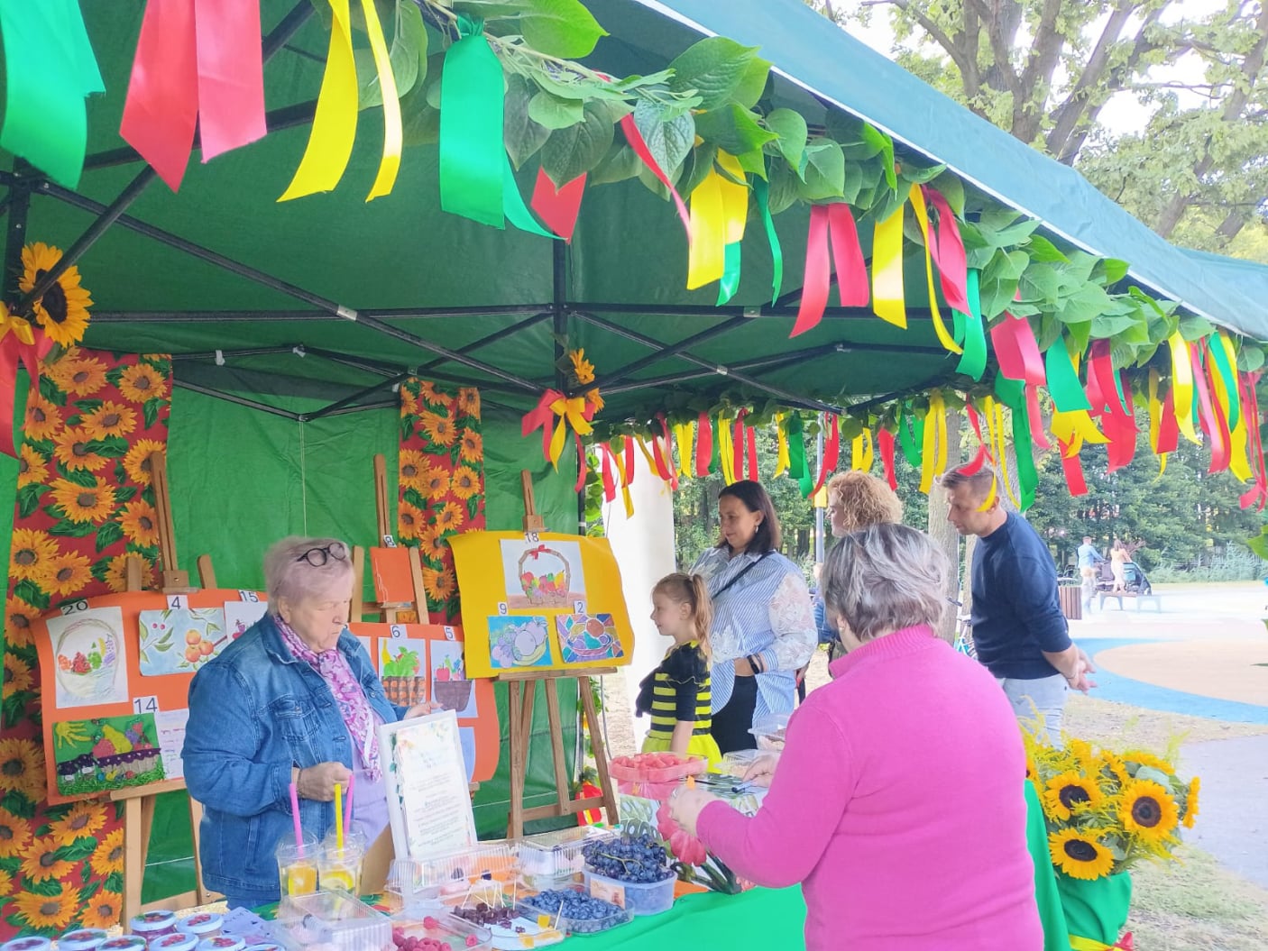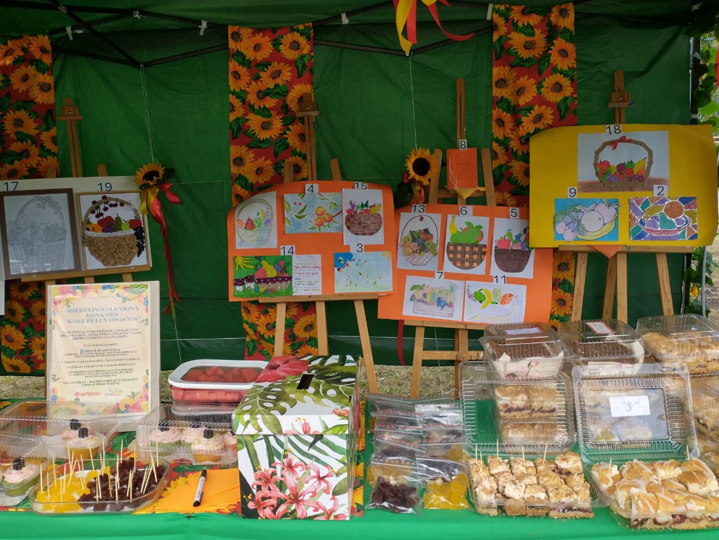 Ponadto zaprezentowano pokonkursową,międzypokoleniową wystawę prac plastyczno-literackich pn." Kosz owoców ",która cieszyła się dużą popularnością.Wszyscy odwiedzający nasz namiot mieli możliwość oddania głosu na wybraną pracę plastyczno-literacką.Takich głosów oddano ponad 200. Bardzo dziękujemy w imieniu autorów tych wszystkich pięknych prac za tak liczne głosowanie.