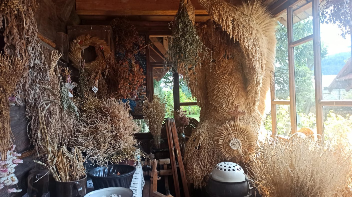 W sierpniu kilkudziesięcioosobowa grupa - członków naszego stowarzyszenia zawitała do wyjątkowego miejsca - Chlebowej Chaty w Brennej ,gdzie czekała nas moc niesamowitych atrakcji, w tym pyszne jedzenie. Sami mieliśmy okazję zrobić podpłomyki, ser i masło .Ich prosty skład i brak konserwantów w dobie przetworzonej żywności -był rajem dla naszych kubków smakowych. Gospodarze Chlebowej Chaty zaserwowali nam też kawę zbożową z mlekiem i cukrem. Na stole pojawił się również pachnący żytni chleb, tegoroczny miodek,swojski smalec.Tymi smakołykami można było zajadać się beż końca.Był to prawdziwy wspomnień czar !