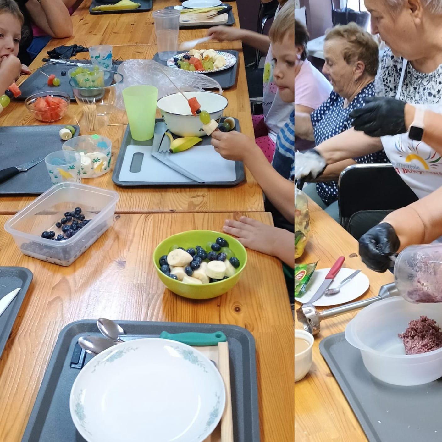 Uczestnicy warsztatów zostali podzieleni na grupy; wykonali między innymi : sałatki owocowe, mini- szaszłyki, soki owocowe,kulki śliwkowo-kakaowe/ kokosowe , żurawinowo- migdałowe z wykorzystaniem suszonych owoców , a także żelki z owoców leśnych oraz musu jabłkowego.